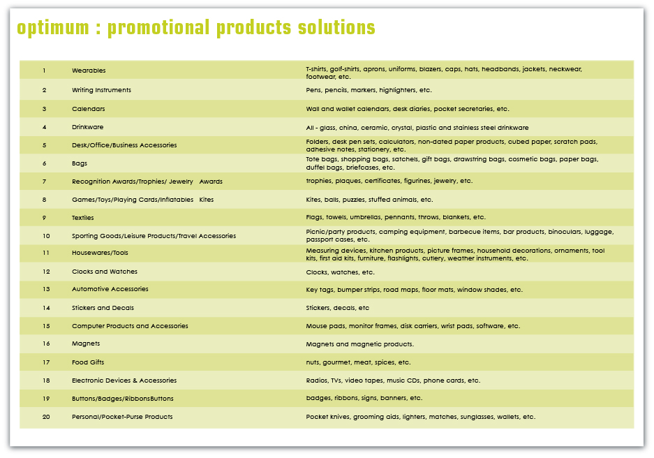 Optimum offers over 800,000 products to choose from. How do you pick just the right mix to showcase your brand? With years of experience in customizing products to fit branding needs, we understand how to combine knowledge of your target audience and objectives as part of a successful long-range communication strategy.